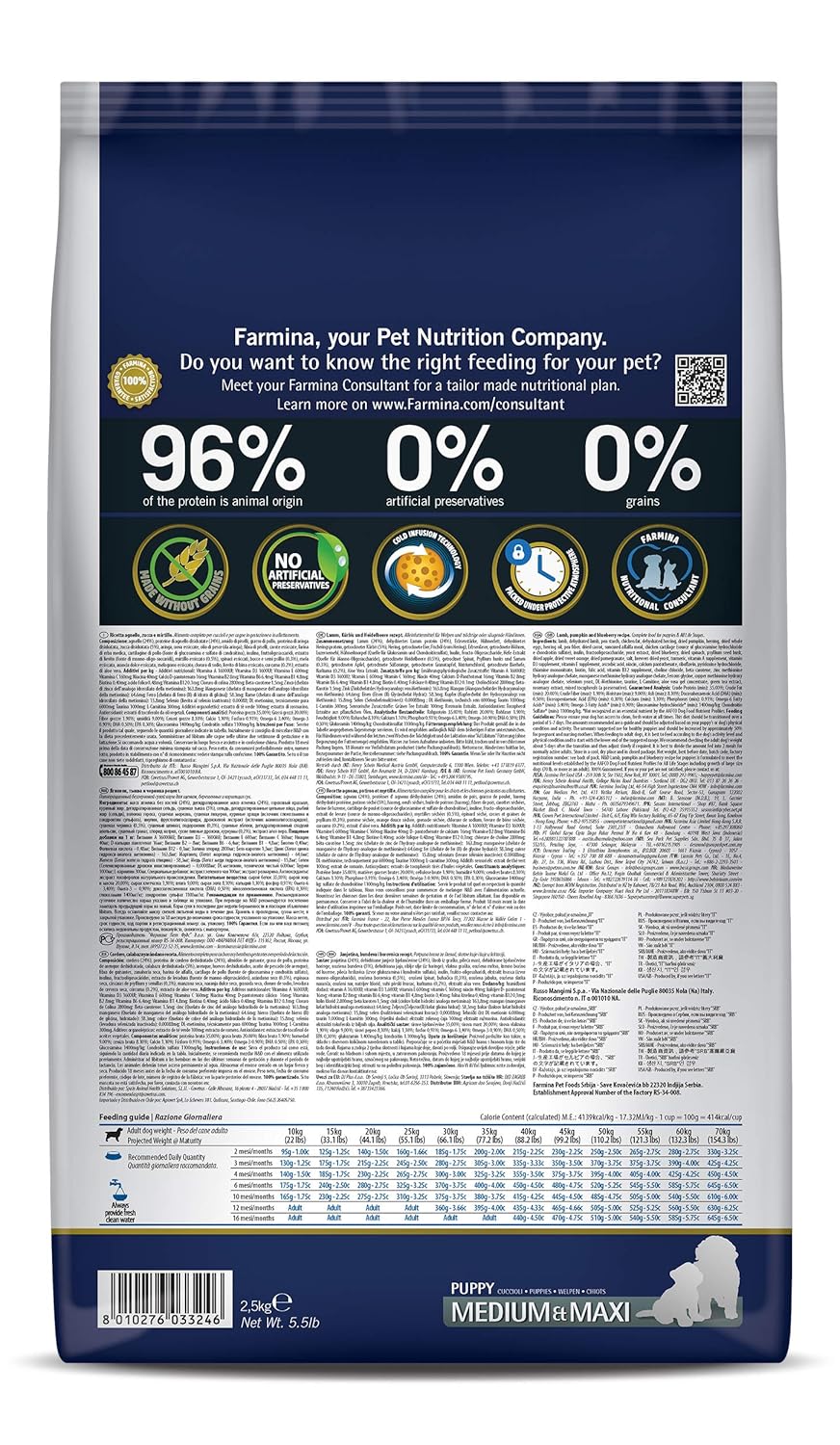 Farmina N&D Pumpkin Lamb & Blueberry Grain Free Puppy Medium & Maxi Breed
